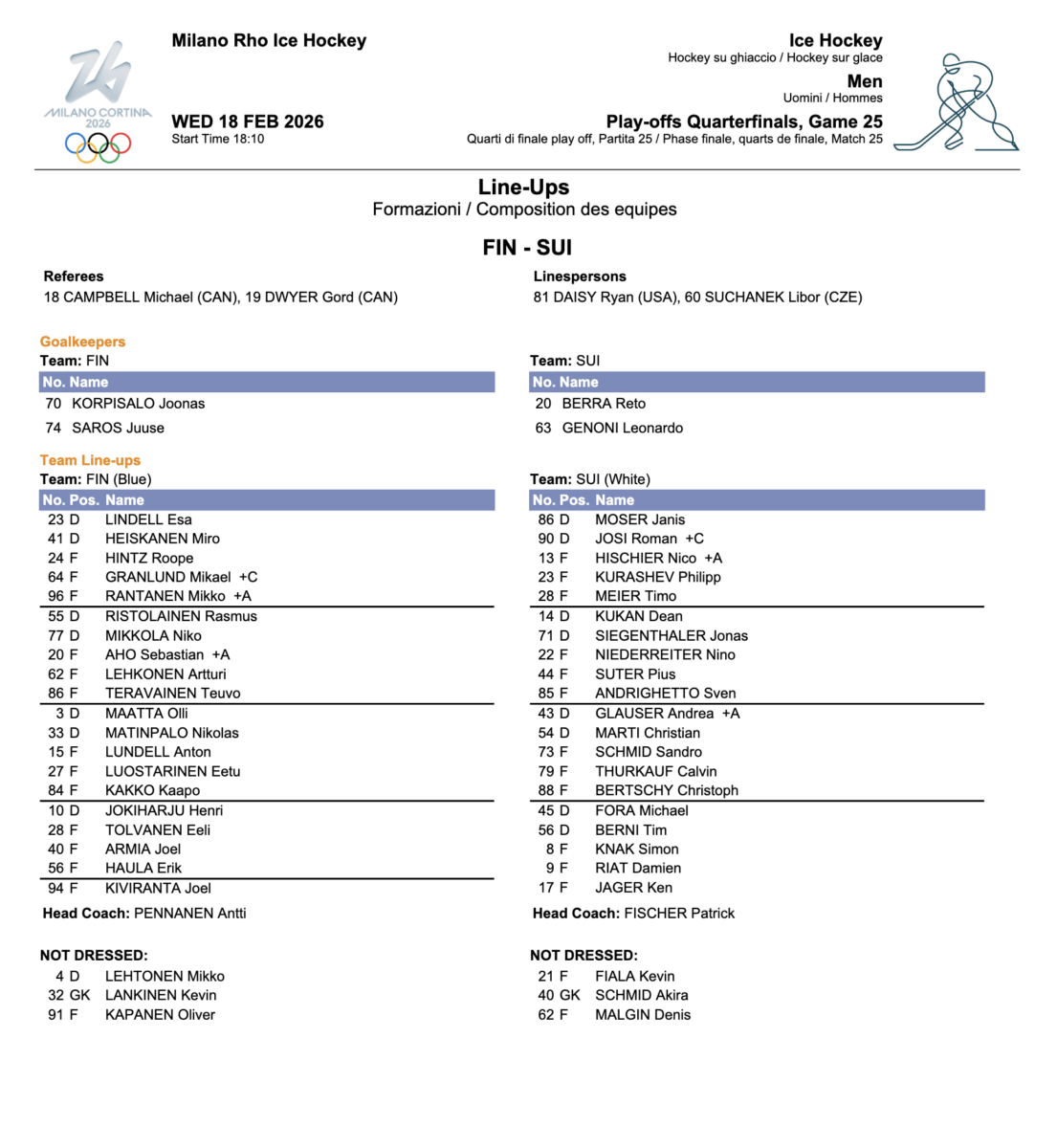 Milano Rho Ice Hockey, Milan (ITA) – Spect.: – Arb.: Campball (CAN), Dwyer (CAN), Daisy (USA), Suchanek (CZE) – SOG: –