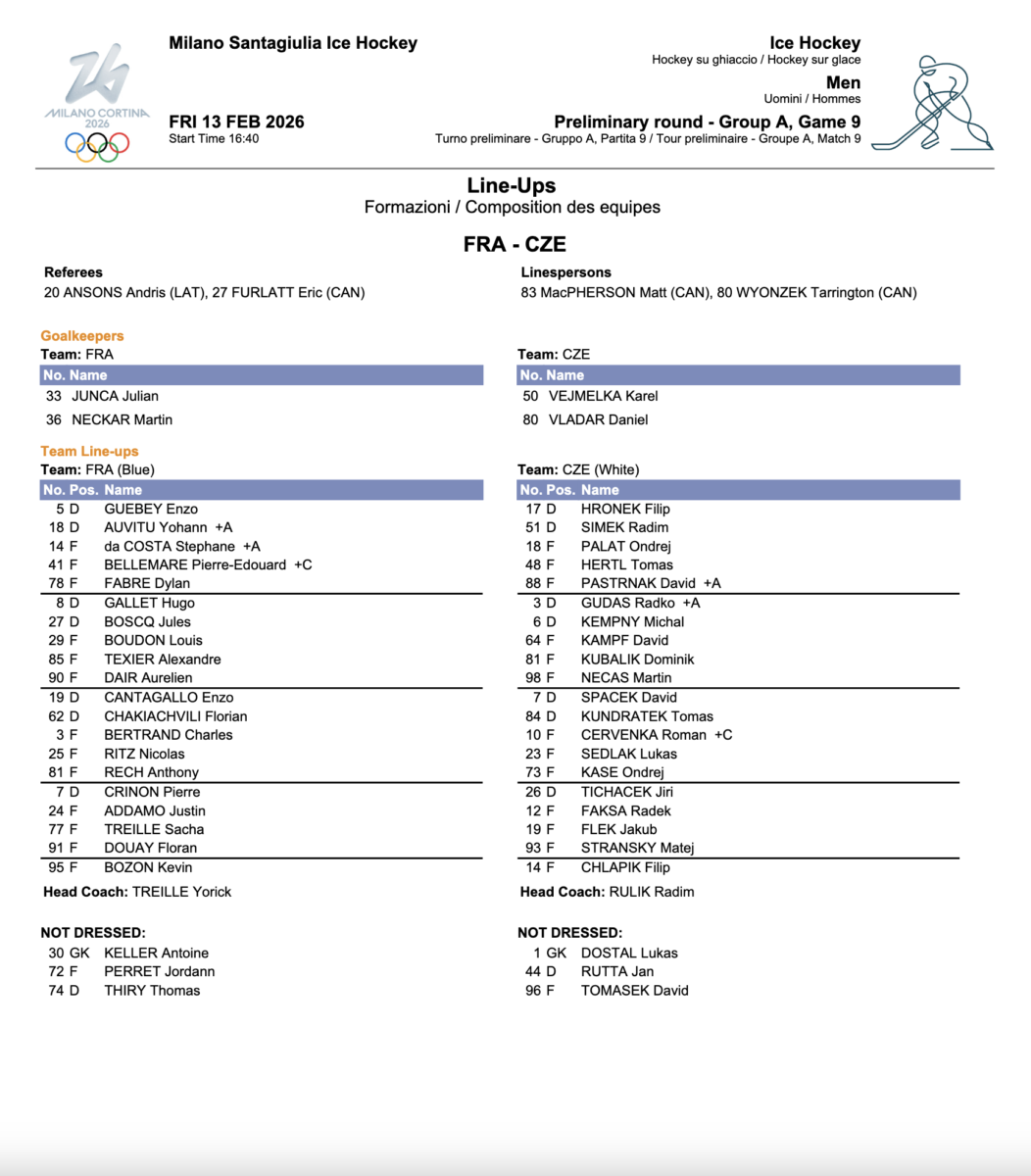 Milano Santagiulia Ice Hockey, Milan (ITA) – Spect.: – Arb.: Ansons (LAT), Furlatt (CAN), MacPherson (CAN), Wyonzek (CAN) – SOG: –