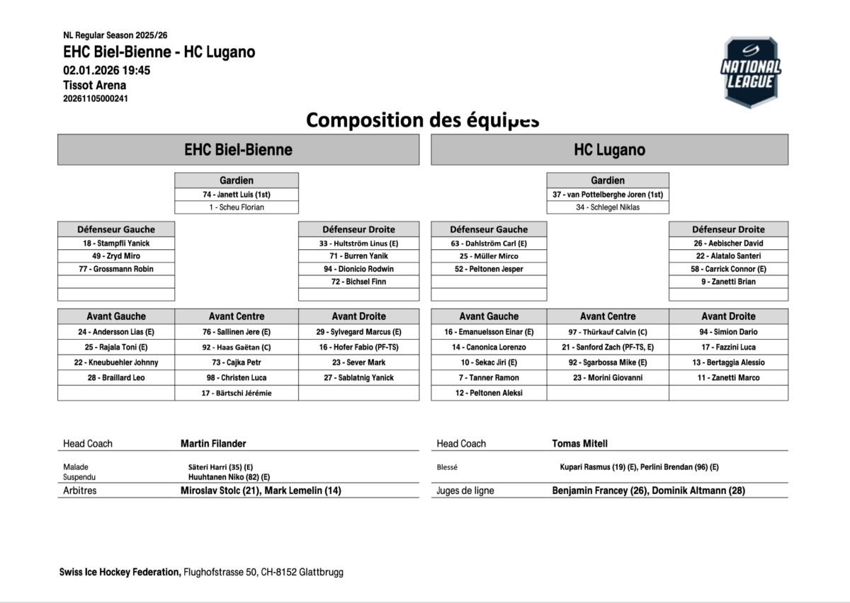 U21 ÉLITE – Bienne gagne à Lausanne, Fribourg à Davos