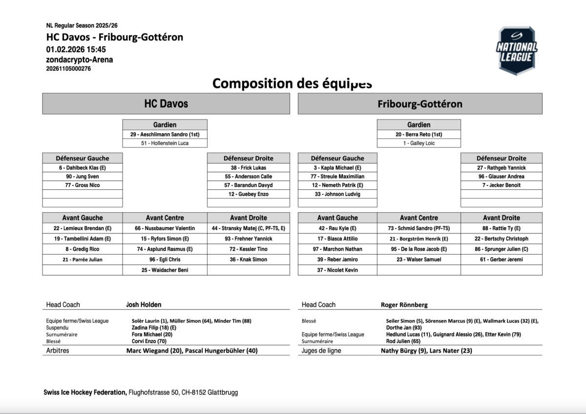 U21 ÉLITE – Bienne gagne à Lausanne, Fribourg à Davos