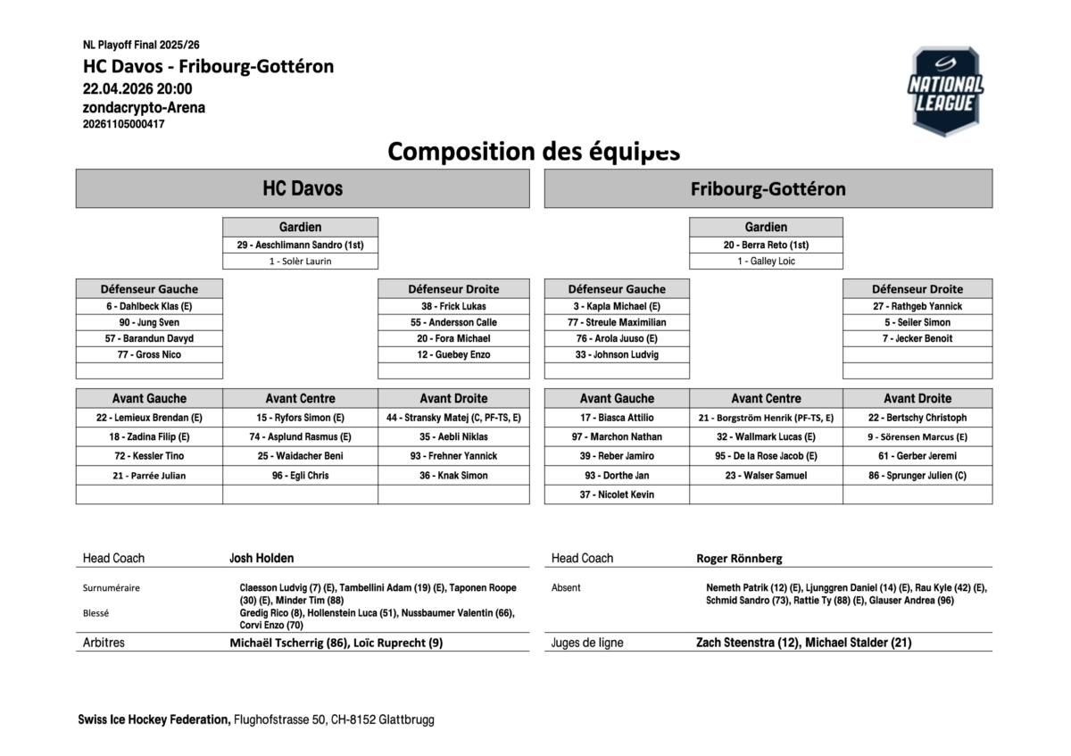 zondacrypto-Arena, Davos-Platz GR – Spect.: 6’547 – Arb.: Tscherrig, Ruprecht, Steenstra, Stalder – SOG: –