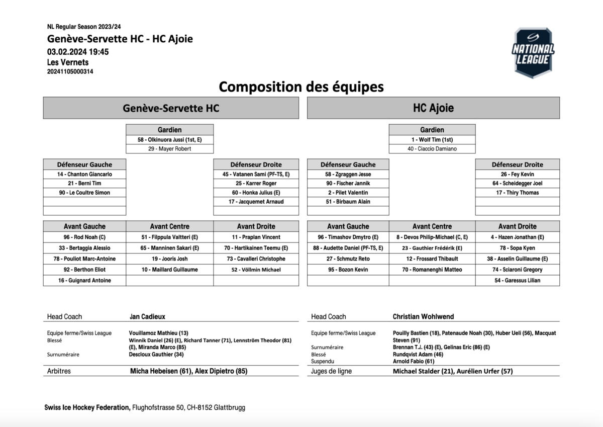 Alors oui, Daniel Audette a répondu au 3-0 de Tim Berni par une réduction de l’écart (25e, 3-1) qui aurait pu provoquer un déclic chez la lanterne rouge. C’était trop compliqué sur la glace du champion qui a continué de mener le match à sa guise. De quoi rétablir l’écart à trois buts grâce à un doublé de Manninen. Ses buts sont tellement rares cette saison (il s’agit du 3e seulement) qu’on relèvera le 4-2 de Philipp-Michael Devos et l’ultime réussite de la soirée sortie de la crosse de Vincent Praplan qui signe donc ce succès genevois après trois revers. Et ce n’est pas Ajoie qui aurait pu lui contester ce dernier, une issue répétitive depuis… deux ans.