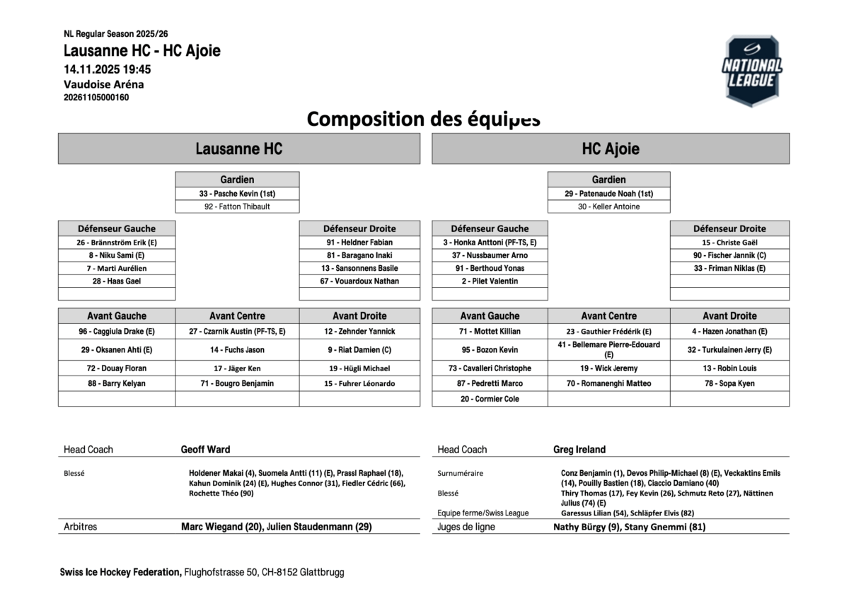FRANCHES-MONTAGNES – Le gardien Ludovic Hauser défendra les buts ce soir