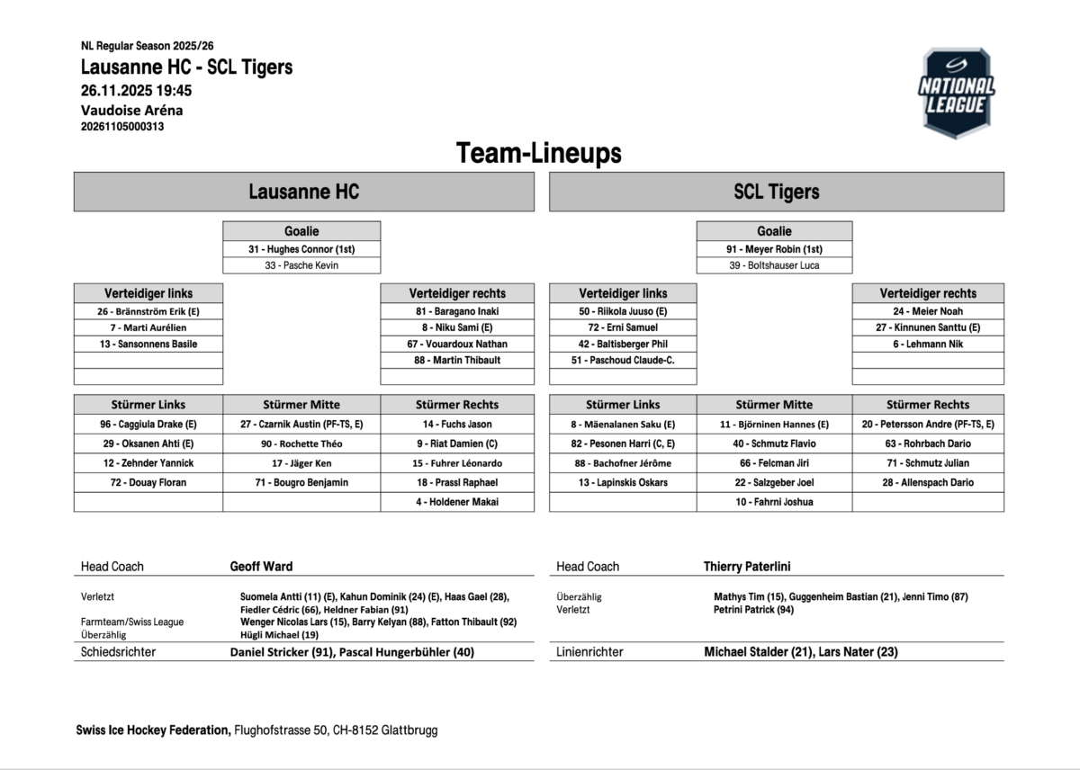 SWISS LEAGUE – Les résultats & le classement de ce mardi