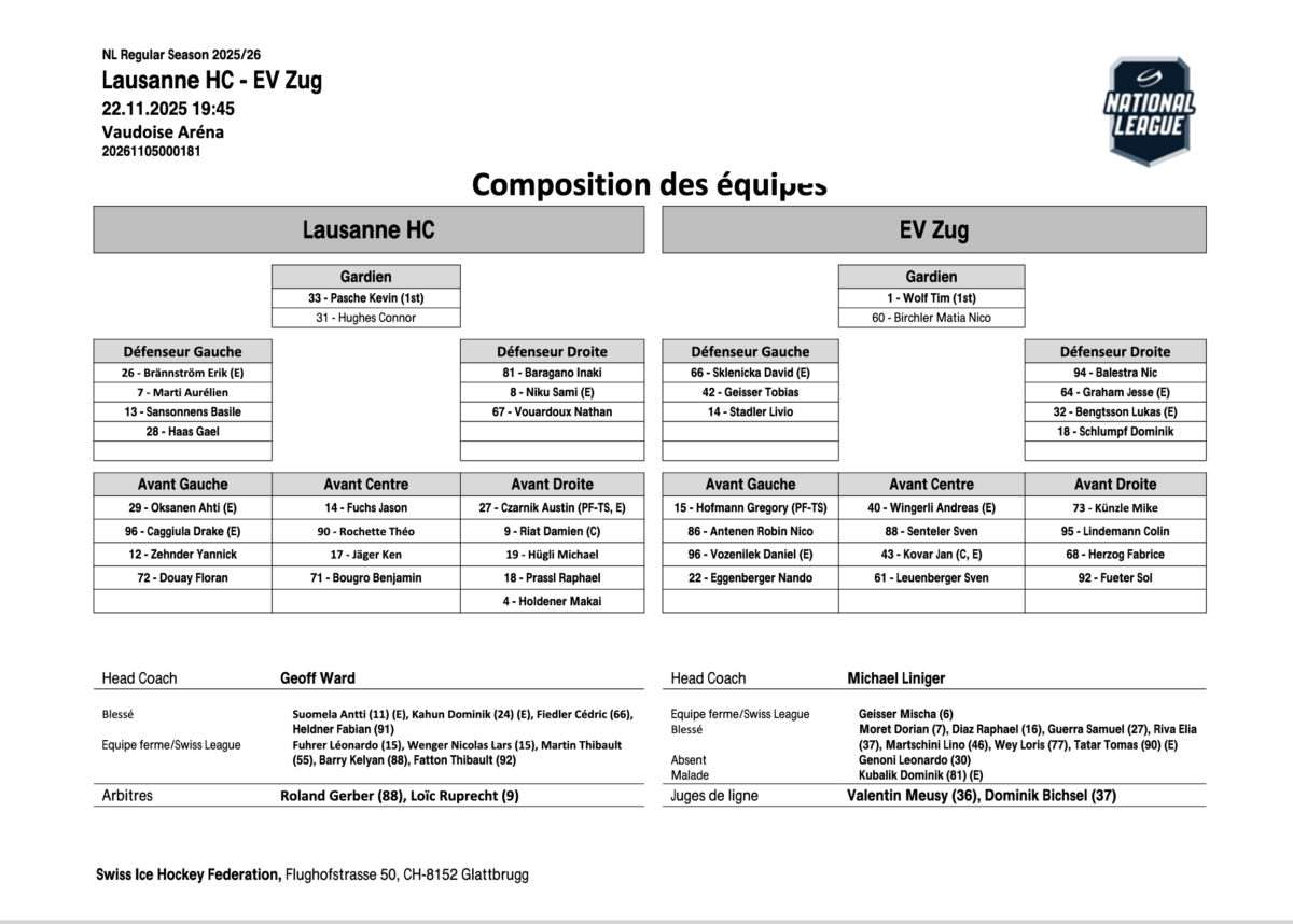 U21 ÉLITE – Lausanne domine Zoug, Fribourg perd un rang