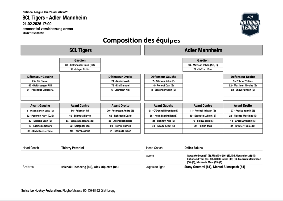 NATIONAL LEAGUE – Préparation: Langnau s’incline face à Mannheim (DEL)