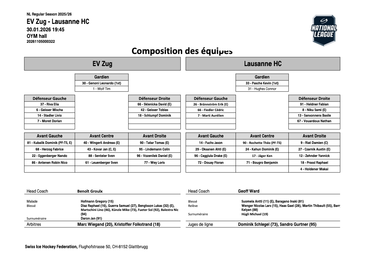SWISS LEAGUE – Les matchs de la soirée dans le détail